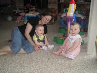 Sarah had a little party with her friends (and Emma's) today. One of the little boys is just 1 week younger than Sarah and Sarah felt the need to stake her claim on him: